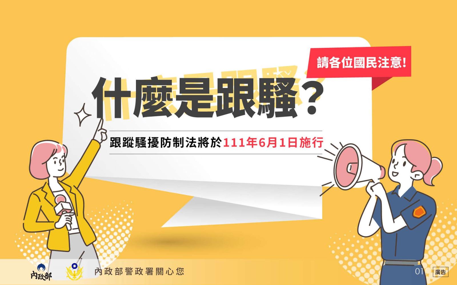 (一)跟蹤騷擾防制法宣導影片: