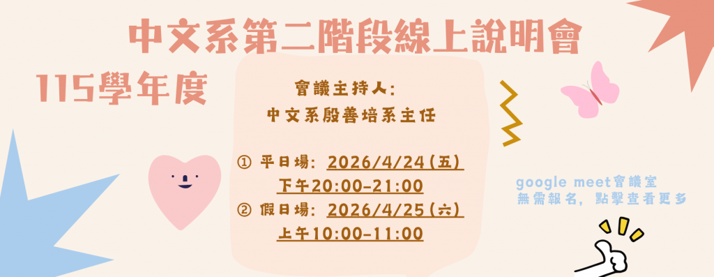 115學年度申請入學-中文系第二階段甄試相關資訊